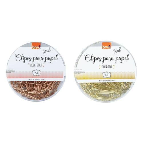 Os Clipes para Papel 2/0 - Dourado e Rose Gold BRW tem como finalidade organizar e classificar papéis, documentos, relatórios, plásticos, embalagens e muito mais! Com eles é possível manter seu ambiente de trabalho e de estudos totalmente organizado, o que amplia sua produtividade e bem estar. Produzido em arame de aço niquelado de qualidade, os clipes possuem alta durabilidade, firmeza e excelente fixação. Também são flexíveis, resistentes a oxidação e não quebram facilmente. Além disso, é possível mesclar as cores para diferenciar documentos e tarefas importantes a serem concluídas. Seu manuseio é de grande facilidade e totalmente seguro, pois não contam com rebarbas.