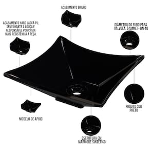 Estrutura em Mármore Sintético com acabamento Hard Lacca PU, semelhante a louça e responsável por criar mais resistência a peça.