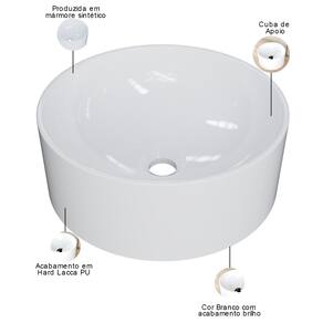 Produzido em mármore sintético com acabamento Hard Lacca PU.
