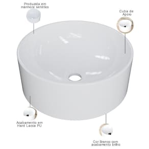 Produzido em mármore sintético com acabamento Hard Lacca PU.