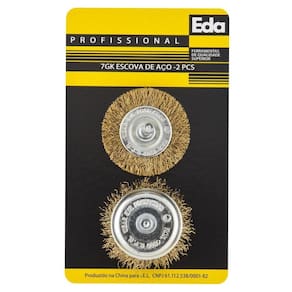 Kit 02 Escovas de Aço Redonda/Copo 7GK Eda Escova de Aço Redonda e Copo para Furadeira 2 Peças 7GK Eda Escova de Aço Redonda e Copo para Furadeira. Indicado para Trabalho diversos, excelente para remover Ferrugem. 1 escova redonda e uma escova tipo copo com 50mm de diâmetro - Marca: Eda - Modelo: 7GK - Haste: 1/4 - Material: Aço latonado - Jogo Com 2 Peças: :: 1 escova redonda de 51mm de diâmetro :: 1 Escova tipo copo com 50mm de diâmetro - Indicado para Trabalho diversos - Excelente para remover Ferrugem - Uso em furadeiras - Rotação máxima: 4.500 rpm