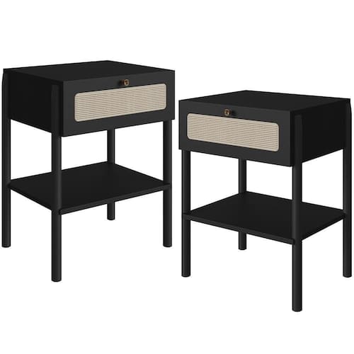 A estrutura com pés em madeira maciça garante durabilidade e robustez, enquanto a delicada telinha sintética na gaveta adiciona um charme extra, tornando-a não apenas funcional, mas também um verdadeiro destaque na decoração. Organize seus livros, óculos ou itens pessoais com facilidade e mantenha tudo ao seu alcance, criando um espaço que reflete sua personalidade e bom gosto com essa mesa lateral para quarto.