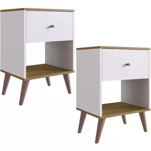 Kit Com 02 Mesas de Cabeceira RE001, ideal para renovar seu ambiente, acomodar seus pertences e deixar seus itens sempre a mão. Estrutura resistente em MDP de 15mm, pintura com acabamento em Finish Foil(Fosco) que também é conhecido como FF atendendo a todos os requisitos de qualidade e durabilidade. Conta com 01 gaveta com corrediças metálicas, puxador de madeira, tampo que suporta até 10kg, possui pés plásticos cônicos retrô e estrutura que suporta até 20kg. Você pode adquirir outros itens dessa linha que são vendidos separadamente, ideal para você montar seu projeto como desejar. Estes móveis chegarão em sua casa separados em 02 volumes.