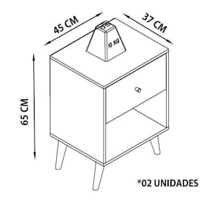 Dimensões Mesa de Cabeceira RE001 (02 Unidades)