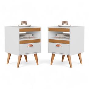 Cada mesa de cabeceira oferece espaço para seus itens essenciais, como livros, abajures e objetos, mantendo tudo ao seu alcance.