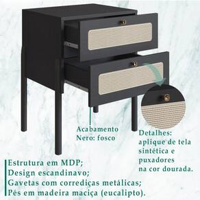 Kit com 02 Mesas de Cabeceira 27933, Linha Oslo Artesano. Traz como característica um traço artesanal, suave e acolhedor. Possui estrutura em MDP de 15mm, pés palitos em madeira maciça de eucalipto garantindo ótima estabilidade e firmeza, acabamento em pintura BP. Composto por gavetas com corrediças metálicas, puxadores de poliestireno na cor Dourado, aplique de tela sintética (PVC com poliéster), fixada na parte externa das gavetas, as extremidades dos pés possuem sapatas emborrachadas para evitar atrito do móvel com o piso, com design escandinavo minimalista, é a opção ideal para um ambiente com toque sofisticado e ao mesmo tempo aconchegante. Mais produtos da Linha Oslo, você encontra em nosso site, podendo fazer a composição completa para sua casa, são diversos itens com design prático e funcional para tornar a vida mais facil e a casa mais alegre. Estes móveis chegarão na sua casa separados em 04 volumes.