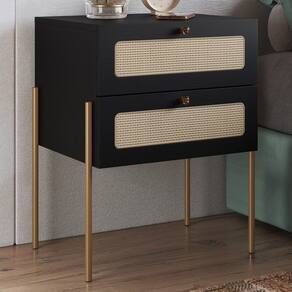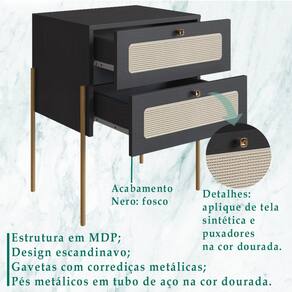 Kit com 02 Mesas de Cabeceira 28933, Linha Oslo Artesano. Traz como característica um traço artesanal, suave e acolhedor. Possui estrutura em MDP de 15mm, acabamento em pintura BP e Pés de tubo metálico em aço e pintura epóxi na cor dourada. Composto por gavetas com corrediças metálicas, puxadores de poliestireno na cor Dourado, aplique de tela sintética (PVC com poliéster), fixada na parte externa das gavetas, as extremidades dos pés possuem ponteiras plásticas para evitar atrito do móvel com o piso, com design escandinavo minimalista, é a opção ideal para um ambiente com toque sofisticado e ao mesmo tempo aconchegante. Mais produtos da Linha Oslo, você encontra em nosso site, podendo fazer a composição completa para sua casa, são diversos itens com design prático e funcional para tornar a vida mais facil e a casa mais alegre. Estes móveis chegarão na sua casa separados em 04 volumes.
