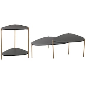 Color: Preto | ColorFamily: Preto | ColorSimple: Preto | ColorSupplier: Nero Dourado | Material: Madeira Maciça, MDP | MaterialFamily: MDP | Model: Adek | OriginCountry: Brasil | OriginState: PR | ProductContents: 02 Mesas de Centro, 01 Mesa Lateral | ProductHeight: 31 cm | ProductInstructions: Produto para uso em ambiente interno, nao devendo ficar exposto ao sol, calor e umidade excessivos. | ProductLength: 70 cm | ProductWarranty: 90 dias após o recebimento do produto | ProductWeight: 14 kg | ProductWidth: 77 cm | SizeDescription: Altura: 31 cm x Largura: 77 cm x Profundidade: 70 cm | SupplierSimpleName: Kit 02 Mesas de Centro e 01 Mesa Lateral Pés Metálicos Adek A03 Nero Dourado - Lyam Decor
