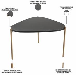 Altura: 31 cm | Color: Preto | ColorFamily: Preto | ColorSimple: Preto | ColorSupplier: Nero Dourado | Cor: Nero Dourado | Diâmetro: na | É adequada para exterior: Não | É dobrável: Não | Forma: Orgânico | Formato de venda: Kit | Inclui acessórios de montagem da mesa: Sim | Inclui manual de montagem: Sim | Largura: 77 cm | Material: Madeira Maciça, MDP | MaterialFamily: MDP | Model: Adek | OriginCountry: Brasil | OriginState: PR | Peso: 9 kg | ProductContents: 02 Mesas de Centro | ProductHeight: 31 cm | ProductInstructions: Produto para uso em ambiente interno, nao devendo ficar exposto ao sol, calor e umidade excessivos. | ProductLength: 70 cm | ProductWarranty: 90 dias após o recebimento do produto | ProductWeight: 9 kg | ProductWidth: 77 cm | Requer montagem: Sim | SizeDescription: Altura: 31 cm x Largura: 77 cm x Profundidade: 70 cm | SupplierSimpleName: Kit 02 Mesas de Centro Para Sala de Estar Pés Metálicos Adek A03 Nero Dourado - Lyam Decor