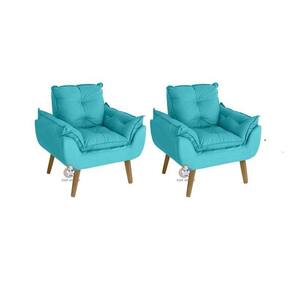 Kit 02 Poltrona/Cadeira Decorativa Glamour Com Pés Quadrado - Azul Turquesa