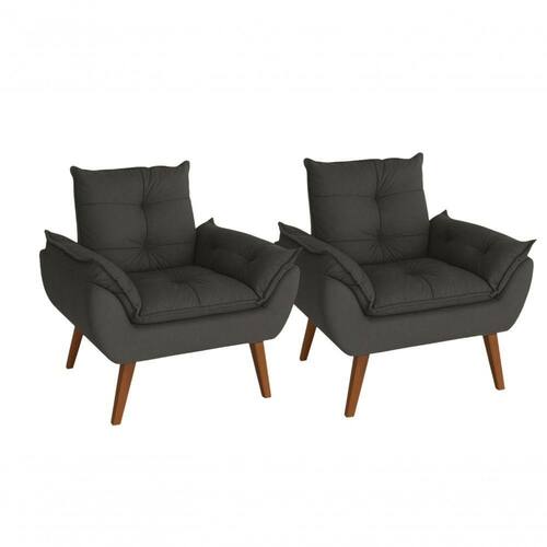 Kit 02 Poltrona/Cadeira Decorativa Glamour Opala Com Pés Quadrado grafite - Poltrona