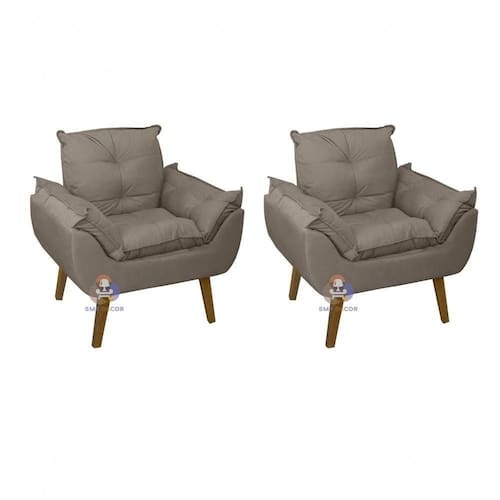 Poltrona Opala agrega beleza e conforto. Produto com design moderno e luxuoso. Fabricada com produtos de altíssima qualidade, composto por pés quadrado de madeira de eucalipto, tecido sued veludo light, assento, encosto e braça com fibra siliconada e espuma densidade D-18, para dispor o melhor conforto possível.