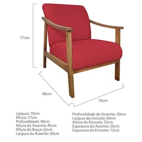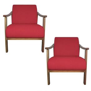 Kit 02 Poltrona Liz Base Madeira Suede Cor Vermelho