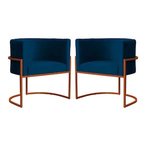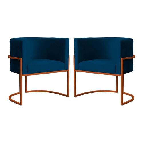 Kit 02 Poltrona Luana Base Bronze Para Sala Veludo Cores - S.A Móveis - Azul Marinho