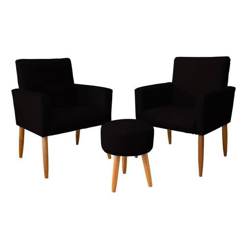Os Kit 02 Poltronas Nina Com Puff Suede Preto, possui alto conforto e visual moderno