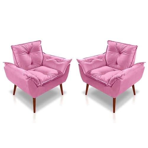 Kit 02 Poltrona Opala Decorativa Suede Rosê