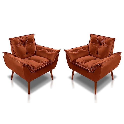 Kit 02 Poltrona Opala Decorativa Suede Terracota - Laranja