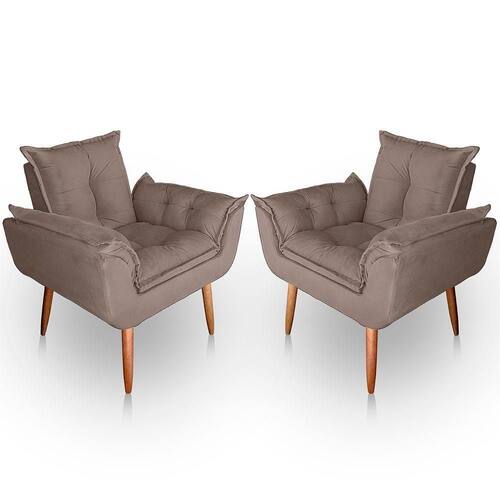 Kit 02 Poltrona Para Sala E Quarto Decorativa Opala Suede Capuccino
