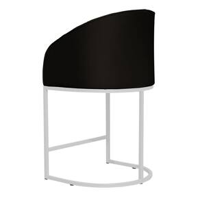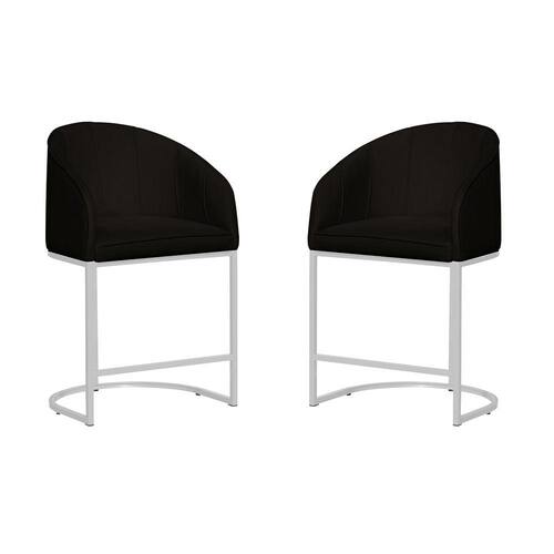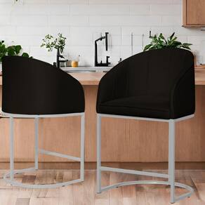 Kit 02 Poltronas Banqueta Decorativa Estofada Tecido Veludo Base Metal Branco - Estopar - Preto