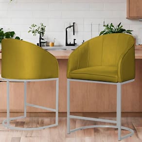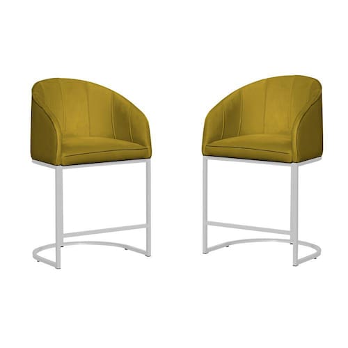 Kit 02 Poltronas Banqueta Decorativa Estofada Tecido Veludo Base Metal Branco - Estopar - Mostarda