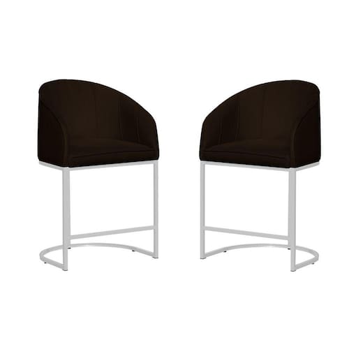 Kit 02 Poltronas Banqueta Decorativa Estofada Tecido Veludo Base Metal Branco - Estopar - Marrom