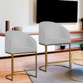 O kit de 2 poltronas Mia é composto por duas poltronas estofadas revestidas em tecido suede, o que confere um toque macio e agradável ao toque. A estrutura das poltronas é feita de metal com acabamento dourado, proporcionando um toque elegante e sofisticado ao conjunto. Fabricadas com materias de alta qualidade e disponibilizamos também lindas cores, aproveite!