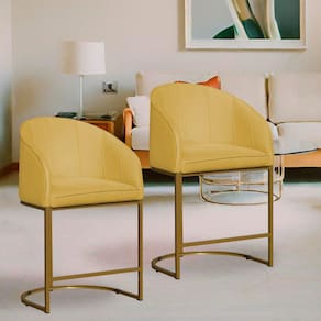 O kit de 2 poltronas Mia é composto por duas poltronas estofadas revestidas em tecido suede, o que confere um toque macio e agradável ao toque. A estrutura das poltronas é feita de metal com acabamento dourado, proporcionando um toque elegante e sofisticado ao conjunto. Fabricadas com materias de alta qualidade e disponibilizamos também lindas cores, aproveite!