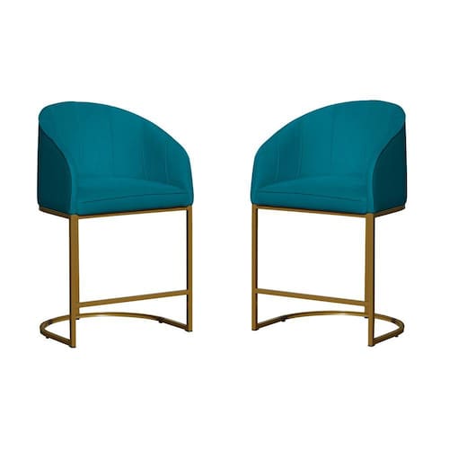 Kit 02 Poltronas Banqueta Mia Decorativa Tecido Suede Base Metal Dourada - Estopar - Azul Turquesa