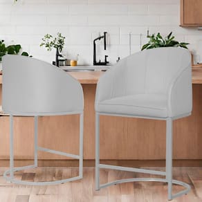 Kit 02 Poltronas Banqueta Mia Estofada Tecido Em Suede Base Metal Branco - Estopar