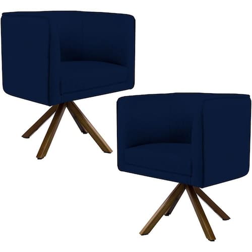 O Kit 02 Poltronas Decorativa Base Giratória Madeira Betina D02 Veludo Azul Oxford C-304 - Lyam Decor exala formosura e elegância! Excelente opção para dispor em sua sala de estar ou espera, recepção, hall de entrada, dormitório, qualquer área de circulação ou antessala entre um cômodo e outro, as possibilidades de combinação são infinitas. Seu protagonismo é notório, sem sombra de dúvidas é perfeita para qualquer ambientação que desejar colocá-la.
