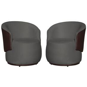 Kit 02 Poltronas Beatriz Confortáveis Tecido Suede Com Composê em Corino Marrom - Cinza