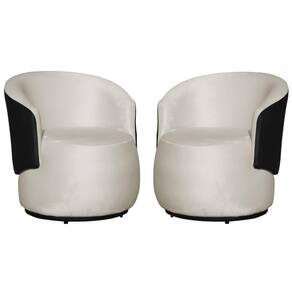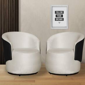 Kit 02 Poltronas Beatriz Orgânico Tecido Veludo Com Composê em Corino Preto - Bege