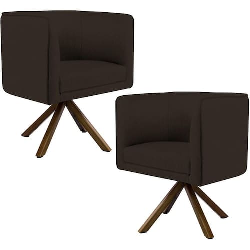 O Kit 02 Poltronas Decorativa Base Giratória de Madeira Betina D02 Corano Marrom C-34 - Lyam Decor exala formosura e elegância! Excelente opção para dispor em sua sala de estar ou espera, recepção, hall de entrada, dormitório, qualquer área de circulação ou antessala entre um cômodo e outro, as possibilidades de combinação são infinitas. Seu protagonismo é notório, sem sombra de dúvidas é perfeita para qualquer ambientação que desejar colocá-la.