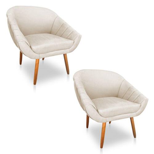 Kit 02 Poltronas Bianca Suede Pés Palito Castanho - Pallazio - Bege
