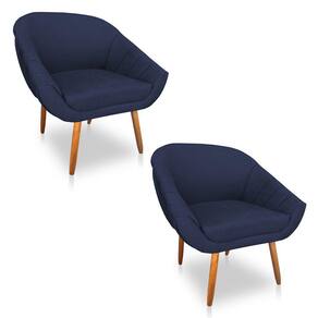 Kit 02 Poltronas Bianca Suede Pés Palito Castanho - Pallazio - Azul Marinho