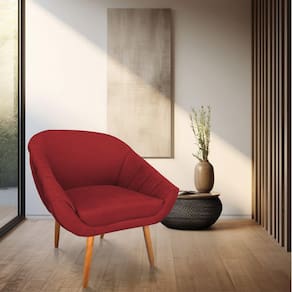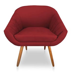 Kit 02 Poltronas Bianca Suede Vermelho Pés Palito Castanho - Pallazio
