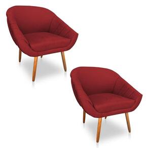 Kit 02 Poltronas Bianca Suede Vermelho Pés Palito Castanho - Blush