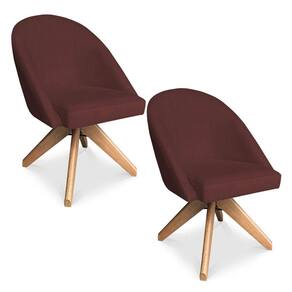 Kit 02 Poltronas Cadeira Giratória Bela Suede Marsala Base De Madeira - Pallazio