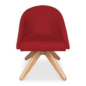 Kit 02 Poltronas Cadeira Giratória Bela Suede Vermelho Base de Madeira - Pallazio