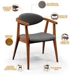 Tem uma proposta mais minimalista que suavizará seu ambiente sem passar despercebida oferecendo mais leveza e receptividade ao seu lar. Estruturada em madeira na cor nozes, contrasta lindamente com o encosto e assento estofados, são resistentes e aconchegantes, você merece está incrível combinação.