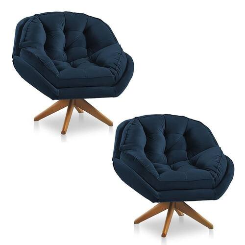 Kit 02 Poltronas Chicago Giratória Veludo Azul Marinho Base De Madeira - Blush