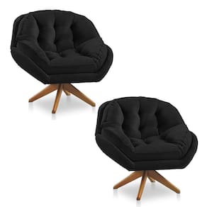 Kit 02 Poltronas Chicago Giratória Veludo Preto Base De Madeira - Pallazio