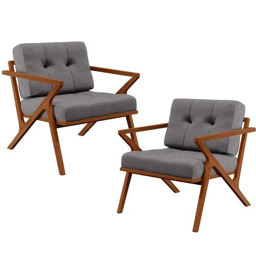 O Kit 02 Poltronas Decorativas Sala Estar Cintas de Corano Laís B04 Linho Cinza Escuro - Lyam Decor se sobressai em qualquer ambiente, permite diversas combinações harmônicas e ainda proporciona muito aconchego. A mistura das percintas de couro com o revestimento convencional dela, somados à sua estrutura em madeira, na cor nozes, com um ar mais geométrico garantem extrema idade e personalidade para sua decoração.
