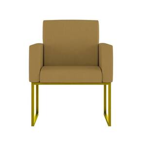 Kit 02 Poltronas Com Base De Ferro Dourado Reforçada Balaqui Decor Capuccino - Amarelo