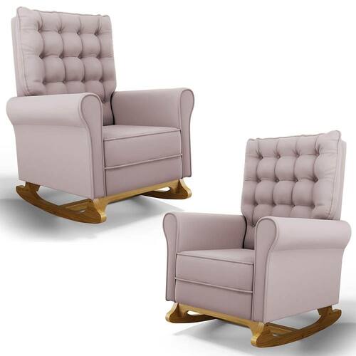 Se está procurando um Kit com conforto, qualidade e sofisticação. Confira o Kit 02 Poltronas de Amamentação e Descanso Base Madeira Balanço Brenda G05 Veludo Rosê, da Mpozenato!