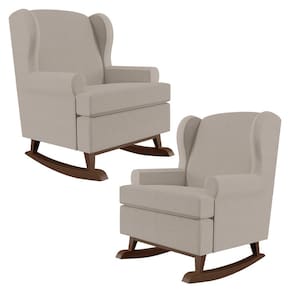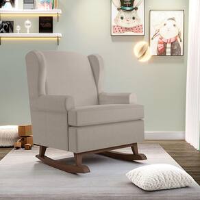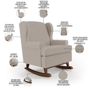 Kit 02 Poltronas De Amamentação Com Balanço Malu Base De Madeira P02 Linho Bege - Lyam Decor