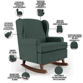 Kit 02 Poltronas De Amamentação Com Balanço Malu Base De Madeira P02 Linho Verde Musgo - Lyam Decor