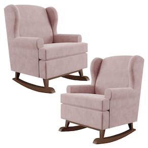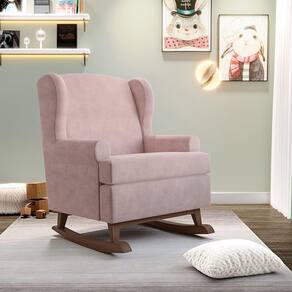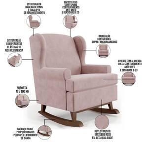 Kit 02 Poltronas De Amamentação Com Balanço Malu Base De Madeira P02 Suede Rosê - Lyam Decor