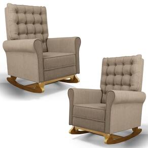 Se está procurando um Kit com conforto, qualidade e sofisticação. Confira o Kit 02 Poltronas de Amamentação e Descanso Base Madeira Balanço Brenda G05 Linho Areia, da Mpozenato!