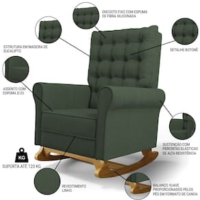 Se está procurando um Kit com conforto, qualidade e sofisticação. Confira o Kit 02 Poltronas de Amamentação e Descanso Base Madeira Balanço Brenda G05 Linho Verde, da Mpozenato!